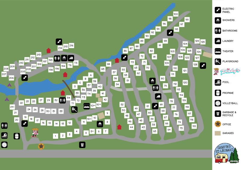 Soak in the waterfront views and enjoy all the available amenities such as; a pool, playground, live music, volleyball, and much more. Become a part of the family, relax in nature, and learn some french. Camping St. Léonard is the perfect place for all! Book your spot today.